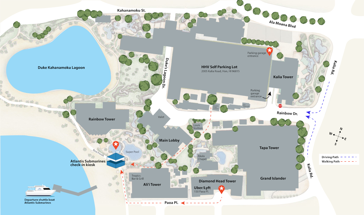- If you are getting dropped off, our drop off location is 150 Paoa Pl. Honolulu, HI 96815. Please note this is just a drop off location, therefore there is no parking at this address. If you will need to park your vehicle, please see the address for the Hilton Hawaiian Village.